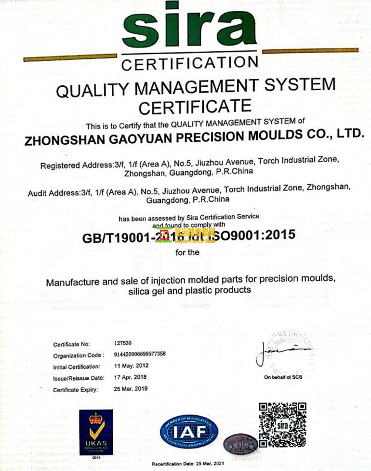 GAOYUAN PRECISION HAVE BEEN PASS ISO9001 MEDICAL QUALITY MANAGEMENT SYSTEM